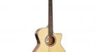 “ギターを演奏する楽しさ”にフォーカスしたモデルです。演奏性だけでなく、サウンド、イントネーションなど、「音楽の旅を始めるにあたって良いギターとは何か」を突き詰めた設計になっています。スプルーストップとマホガニーサイドバックの最もポピュラーな組み合わせを採用し、アコースティックギターらしさのあるサウンド。徹底した品質管理と厳選された素材による合板は単板を凌駕するほどの鳴りを実現。フィンガーボードにはアマラエボニーを採用。密度の高い木材を使用することで、滑らかなフィンガリングフィールを実現しています。ふくよかな低音と歯切れの良いサウンドを奏でるオーディトリアムシェイプを採用し、深い低音と煌びやかな高音を奏でます。ボディバインディング、オリジナルデザインのブリッジ、アマラエボニーを丁寧に組み合わせて制作された、ロープデザインのロゼッタが力強く上品な見た目を演出しています。カッタウェイを搭載しハイフレットでのプレイアビリティを向上させ、Bromoオリジナルのピックアップシステムを搭載。幅広い現場で活躍できるモデルです。