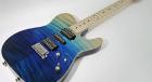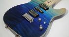 追加料金で工房での選定を依頼したワイドフレイムメイプルの大ぶりな杢目が映えるハンドステインによるブルーのグラデーションカラーが印象的な一本です。