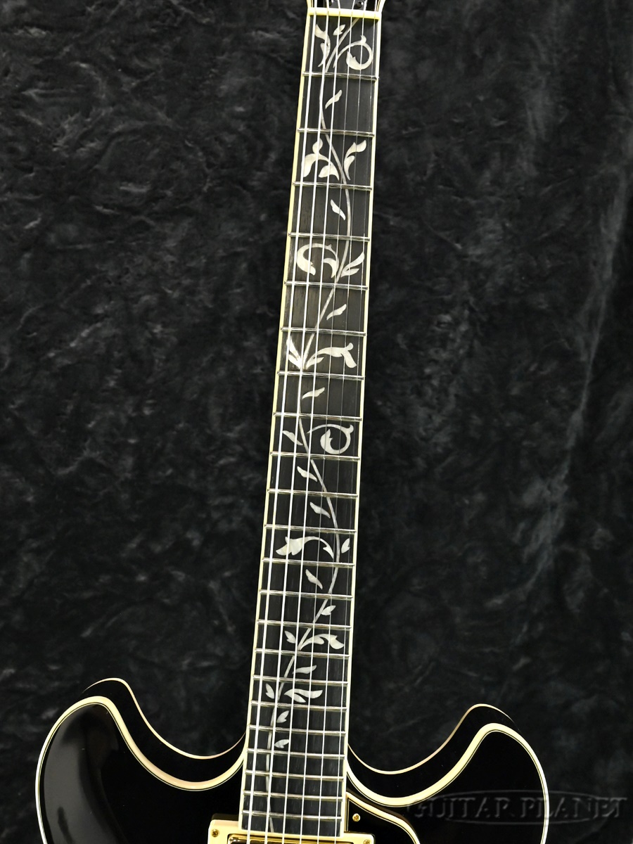 ES-335等の一般的なセミアコより若干小振りなボディデザインで抱えやすく、ハイポジションまでスムーズなフィンガリングが可能です。