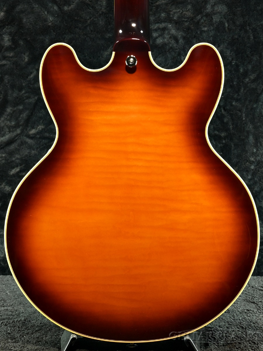 ボディー構造自体もマホガニー板をくり貫き、サイドとセンターブロックを一体化させることにより、素早いレスポンスと深い鳴りを両立させています。