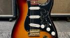 It features the instantly recognizable SRV logo pickguard, a left-handed tremolo, gold hardware, and other signature model aesthetics.