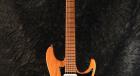 指板とネックにはエステック処理されたメイプル材を使用しています。エステック処理とは仙台で開発された木材への窒素加熱処理技術で、ギター材としての採用は世界初です。エステックウッド木材は形状安定性、反りに対する耐久性、耐水性、温度変化に強いといった特徴を持っており、それらの特徴を以って日本国内で特許技術を取得しています。ネックの厚みは数多くの試作と検証を経た結果、20.5*22.5 (at 1F*12F)がベストであると結論付けました。また、フィニッシュには弾き込まれたギターのネックの様な質感のオイル・フィニッシュ仕上げを採用しています。