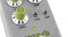 堅牢度の高いシルバーの 4.375” x 2.375” x 1.25”サイズの筐体にはペダルボード上での使用を想定し、インプット/アウトプットのジャックを上部にまとめるという工夫が成されています。