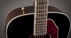 ジャンボカッタウェイを採用し、ボディトップ&バック、サウンドホール、指板、ヘッドストックに、まばゆいゴールドスパークル・バインディングが施されています。