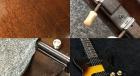 ナット、フレット、ブリッジ(Epiphone製)、ノブ×4、ストラップピン、ピックガードビス、PUマウントビス、PU高さ調整用のスプリング、弦アースの線材がそれぞれ交換されています。