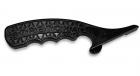 2:ブリッジ側から、String Stretchaを挟み込みます。フック部を弦の下から、ヒール部を弦の上から抑えるようにします。
