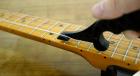 5:ヒール部を他の弦と平行に保ち、ナット側へとString Stretchaを滑らせます。(1Fまで滑らせたら、またブリッジ側に戻します。)
