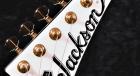 Whiteカラーボディ、ゴールドパーツ、ブラックピンストライプ、Jacksonギター第一号機を思い起こさせるカラーです!!
