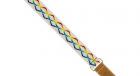 使い心地の良いアクリル・ストラップにレインボーのラインを刺繍しています。