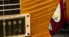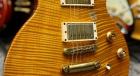 こちらはPlusトップ仕様のクッキリと浮き出たAAAグレードのフレイムメイプルが揺れ動き、Trans Amberのカラーとゴールドハードウェアに映える、高級感のあるルックスです。