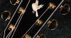 ヘッドに配置されたのはまるやまたつやの出身地北海道に生息するシマエナガのインレイ。素材である天然の白蝶貝は角度や光の反射によってその表情を変えます。