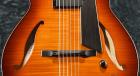 14.75インチ幅のラミネイト・フレイムメイプルボディに、エボニー指板を貼り合わせたマホガニーネックがセットネック構造にてジョイントされております。