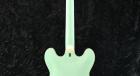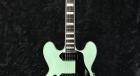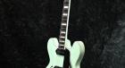 パステル系のカラーとドッグイヤータイプのピックアップの組み合わせによってポップでビンテージライクな雰囲気を醸しだしながらも、パーロイド素材のブロックインレイやボディを装飾するマルチバインディングによって高級感も演出。