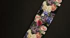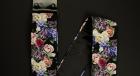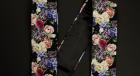 Rose Guitar Strap -Black Italian Satin- w/Black Glossy Leather Ends【HandMade In Poland】【Flower】【ハンドメイド】【エレキ館在庫商品】