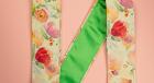 Floral Folk Guitar Strap -Green Italian Satin- w/Vintage Leather Ends【HandMade In Poland】【Flower】【ハンドメイド】【エレキ館在庫商品】