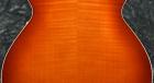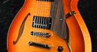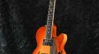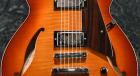 この度入荷致しましたモデルは、センターブロックを配したセミアコタイプのセミホロウモデル。美しい杢目のラミネイト・フレイム・メイプルボディに、エボニー指板を貼り合わせたマホガニーネックがセットネック構造にてジョイントされております。