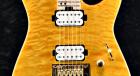 トップ材に採用されたキルトメイプルの杢目が色鮮やかなに彩られたDark Amberカラーや艶消しのゴールドハードウェア、メイプル指板等全体的に高級感を感じさせてくれるルックスがカッコいい品です。