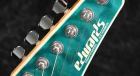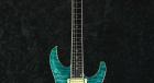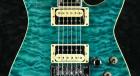 ターコイズカラーに近いSee Thru Blueがトップ材のキルトメイプルを美しく彩り、杢目の美しさを際立たせた高級感のあるルックスです。