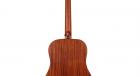 プラスチック素材を一切使用していない、天然材料だけで製作されたモデルです。ソリッドプルース・トップと厳選されたマホガニー合板のバック&サイドを組み合わせています。スプルースは、その明瞭でクリアな音色と魅力的なサスティーンを持ち、マホガニーバック&サイドの暖かさとふくよかさ、そして多くのギタリストに愛されるドレッドノートシェイプを採用し、深い低音と煌びやかな高音を奏でます。オリジナルデザインのブリッジ、マザーオブパールのポジションインレイ、アマラエボニーを丁寧に組み合わせて制作された、ロープデザインのロゼッタが力強く上品な見た目を演出しています。