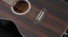 ダークで気品あるシンプルな優雅なルックスに豊かなサウンドが特徴のアコースティックギターです。トップは、ローズウッドに似たクリアな高音とややすくみ気味の中音域を持ちながら、深みのある強い低音と中低音を持つトーンウッドストライプエボニーを採用。オクメのバックとサイドにより、全体のトーンをよりウォームな仕上がりに。また、小ぶりなボディとブレーシングにより、反応の良いバランスのとれたサウンドを実現しています。ネックは現代的な快適さを追求したデザイン。チューナーを内蔵したBarcus Berryピックアップシステムを搭載しています。