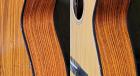 トップには自社でトリファイド(焙焼)加工を施したスプルースを単板で使用、バックはアーチ形状に加工した合板のインディアン・ローズウッドになります。