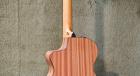 トップには自社でトリファイド(焙焼)加工を施したスプルースを単板で使用、バックはアーチ形状に加工した合板のサペリ材を使用しています。