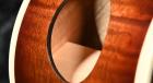 SIDES & BACK材にはフレイム杢が入ったオコウメ材を採用しています。やや柔らかい木質で音色は明るく、音量感に富むと共に豊かな中低音域が特徴です。