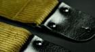 Vintage Khaki Corduroy Guitar Strap w/Black Glossy Leather Ends【HandMade In Poland】【Corduroy】【ハンドメイド】