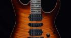 ボディはお馴染みFlame MapleトップMahoganyバックとなっており、Mahoganyで中低域で太さを作りMapleで高音域を出す伝統の手法です。Maple部分のサイドを着色しない、ナチュラルバインディング手法はJ.customではお馴染みとなっており、ボディに引き締まった印象をを与えます。