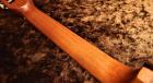 艶消しサテン仕上げの塗装とマホガニーの質感、ボディ周りのバインディング装飾が、落ち着いた印象を与えてくれます。