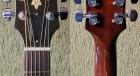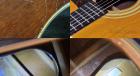 年式相応に塗装のウェザーチェックや、背面のバックル傷、サウンドホール周りのタッチアップ、塗り込みピックガードの宿命とも云えるガードクラック(裏面から補修済み)など見られます。