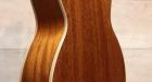 艶消しサテン仕上げの塗装とマホガニーの質感、ボディ周りのバインディング装飾が、落ち着いた印象を与えてくれます。
