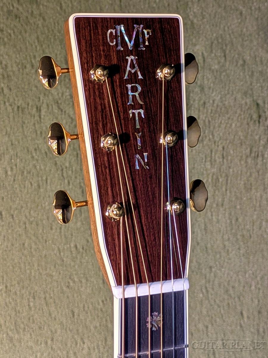 ボディを彩るアバロントリム、指板にはスノウフレイクスのインレイ、高級なマーティンギターの代名詞でもあるヘッドの縦ロゴ、伝統的でありながらも色褪せないデザインが老舗ブランドの魅力を放っています。