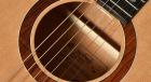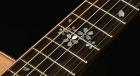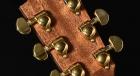 元となったギターと同様に、小ぶりなボディシェイプを採用し、サイドバックには国産の桜材、指板には縞杢が際立つエボニー材を選定。 ボディにはあえてピックガードを取り付けず、装飾をシンプルに抑えることで鳴りを最大限に引き出しています。その一方で、ヘッドと指板には白蝶貝やアバロンを用いて華やかな装飾を施しました。
