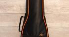 艶消しサテン仕上げの塗装とマホガニーの質感、ボディ周りのバインディング装飾が、落ち着いた印象を与えてくれます。