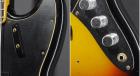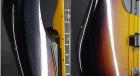 マザー・オブ・パールのインレイの豪華さに対して、ヴィンテージ感あふれる脱色したアルダー材から垣間見える渋さあふれるサンバーストの色味との組み合わせのセンスが秀逸です。