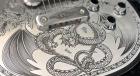 同様にアルミ合金を用いたヘッドのダイアモンド・エンブレム、トラスロッド・カバー、テイルピースやピックアップ・リングをはじめ、アウトプット・ジャック・プレート、コントロール&スイッチ・バック・プレートに至るまで彫金を施しています。