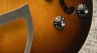 The condition of the guitar has some scratches and dents from age and use, parts are dull and rusty, paint is cracked and chipped, there are also some cracks and repair marks on the binding, and weather checks are visible. The truss rod is in good condition.