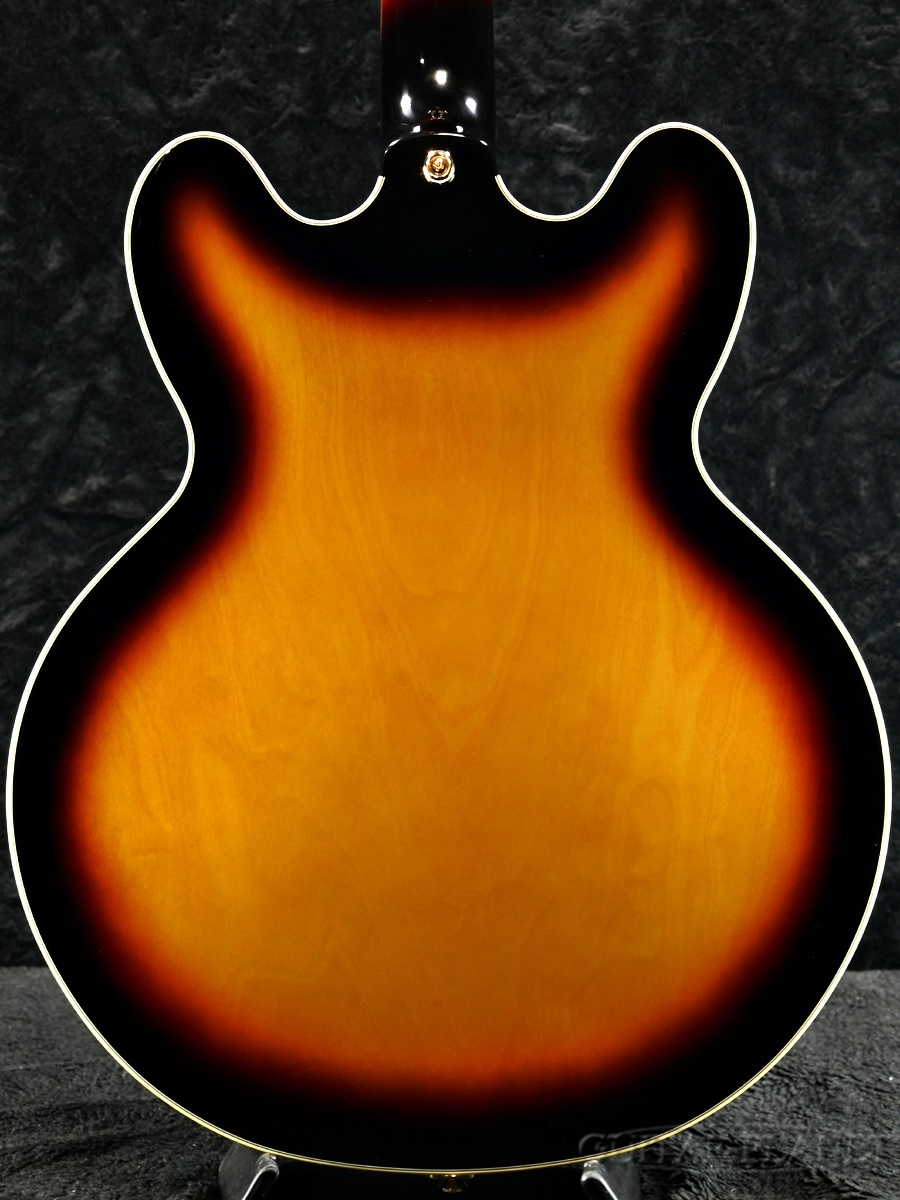 このエレガントな楽器はレイヤード・メイプルから作られたセミホローボディが採用され、ハウリングに強いメイプルセンターブロックを備えています。