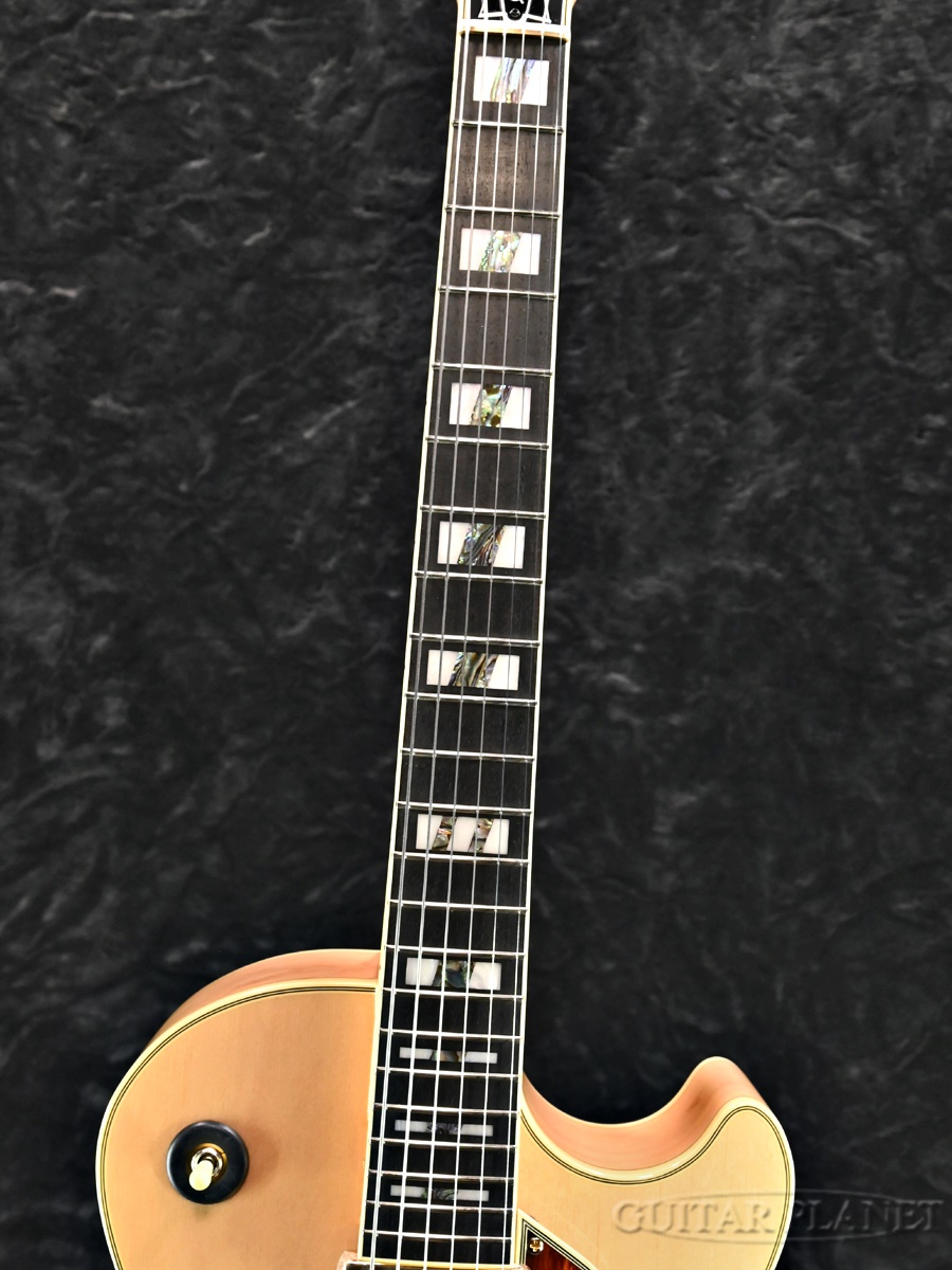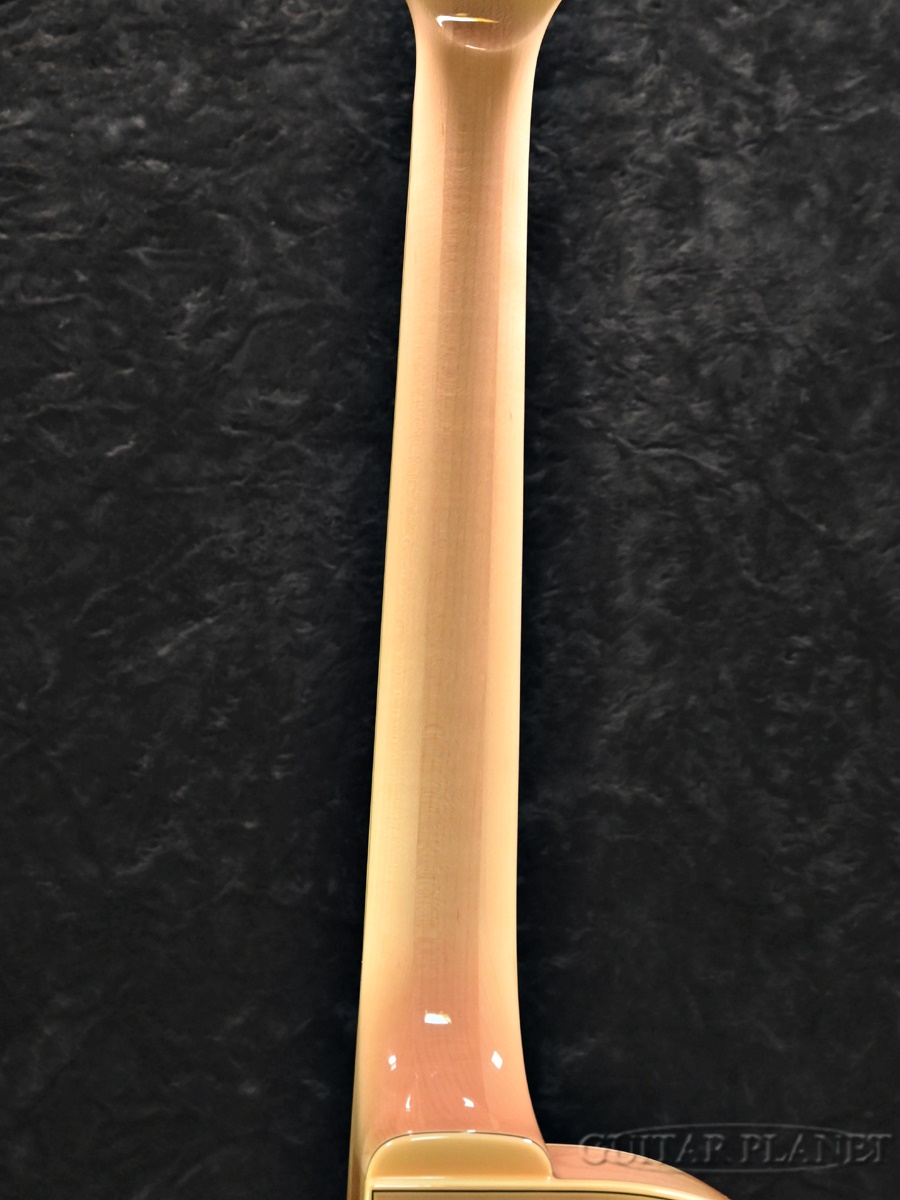 14.75インチ幅スプルーストップ、メイプルサイド&バックのボディに、エボニー指板を貼り合わせた3ピースメイプルネックがセットネック構造にてジョイントされております。
