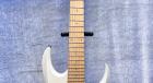 全体をつや消し加工を施し、細かいラメが煌めくPearl White Flatのカラーとメイプル指板の組み合わせが上品な高級感を感じさせてくれる佇まいです。