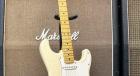 The neck combines a maple neck with a maple fingerboard, a so-called "laminated maple" construction.