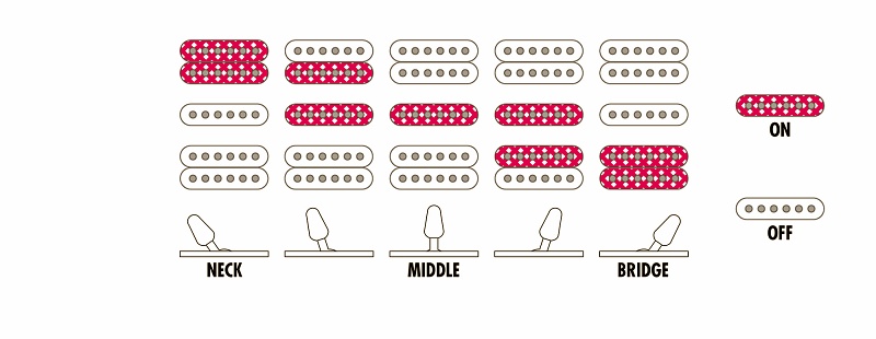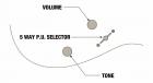 - Controls, Pickup selector 1 Volume, 1 Tone, 5-way lever switch
