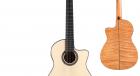 ヨーロピアン・スプルース単板トップとフレイム・メイプル・バック&サイドを採用し、ブライトでキレのある音色と甘く際立つハイエンドを実現した美しいクロスオーバー・ギター、メイプルをご紹介します。12/14メイプルの最大の特徴は、その印象的で美しいバック以外に、スチール弦のようなスリムなネック(ナット幅48mm)と16インチ・ラジアスの指板です。ボディには12フレットと14フレットが用意され、Fishman Presys Blendプリアンプが搭載されている。