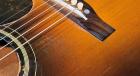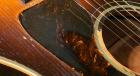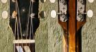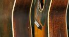 過去に割れ接着、ネックリセット(フレット、ナット、サドル交換含む)、ピックガード貼り直し、ネックヒール部分にストラップピンの増設が見られます。