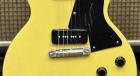 Two P-90 single-coil pickups are mounted, producing a sound that combines thickness and bite with a clear, light tone.