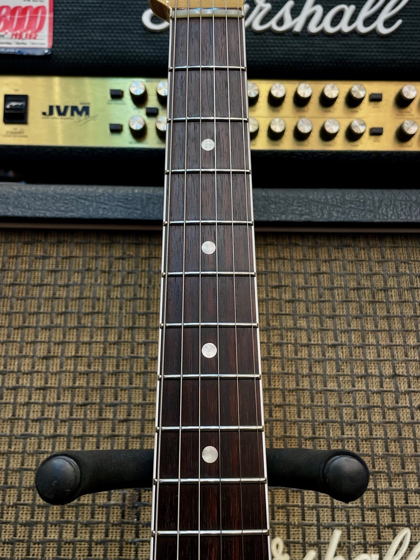 指板面は9.5"Rのラディアスを採用したモダンなスペックを採用しており、フレットサイズはヴィンテージトールサイズを採用した現代的なシーンにも対応しやすくなっております。