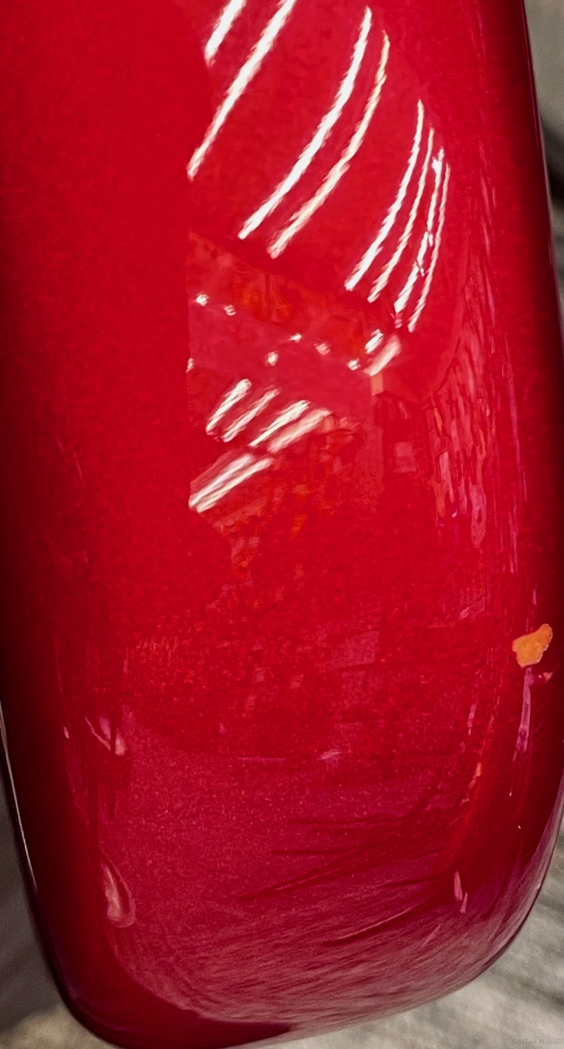 色鮮やかなCandy Apple Redが目を惹き、バインディングを施したBound Neck仕様も備えた人気の組み合わせを持った個体です。