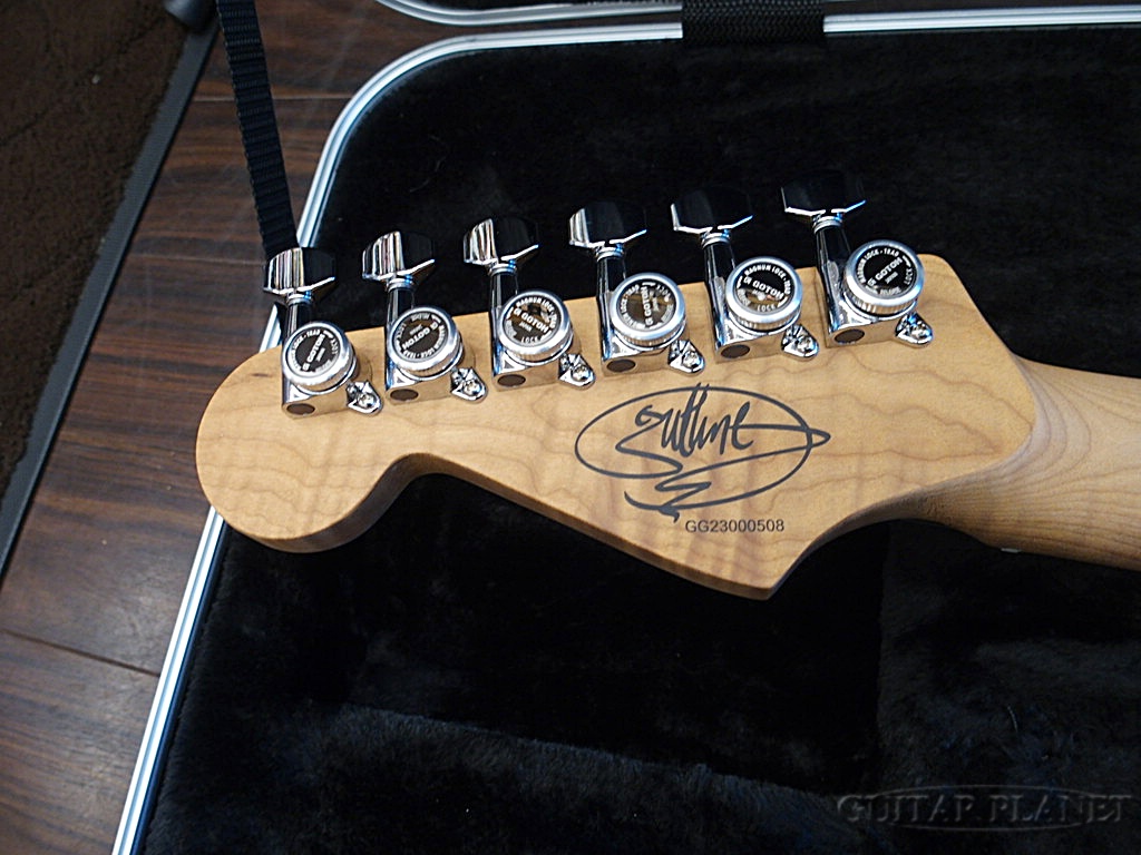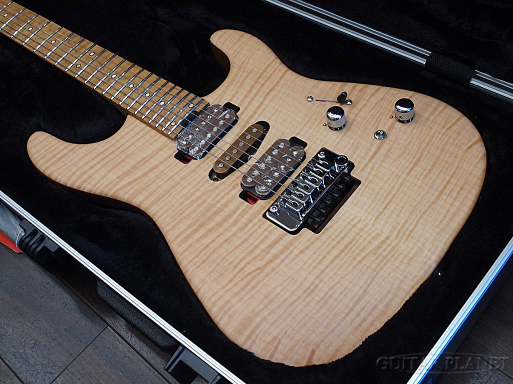 ネックはFlame Maple on Flame Maple指板となっており、こちらもCaramelizedされており、サウンドの他、反りに強く安定したプレアビィリティを確保しています。