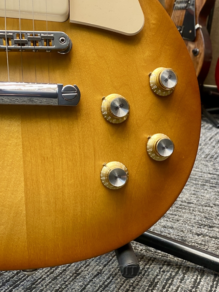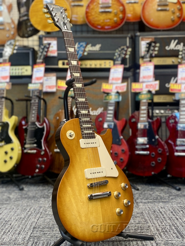 Equipped with P-90 "soapbar" pickups based on the late-'60s Les Paul reproduction models, it produces a wide, bright sound.